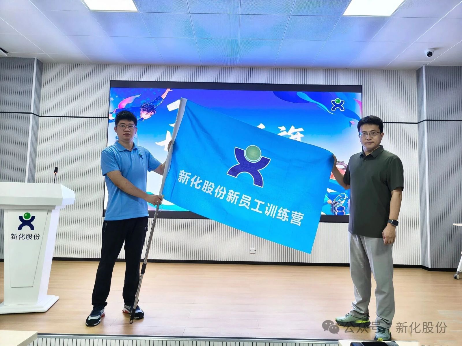 此次开营仪式上应董事长对新员工的第一课,既是对新化股份新生力量集结的“动员令”,更是新员工职场征程的 “启航标”。接下来,新员工将通过集中培训、岗位实践、师傅带教等多元环节锤炼能力。相信这群 “新” 力量,会带着营旗赋予的使命、师傅传递的匠心,扎根新化、建功立业,用青春与实干 “化” 出与企业共赴未来的新篇章!